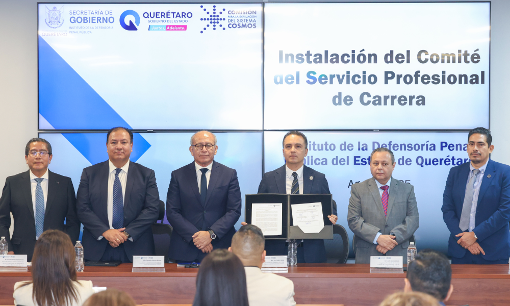 Querétaro. El secretario de Gobierno, Eric Gudiño Torres, encabezó la instalación y toma de protesta del Comité del Servicio Profesional de Carrera del Instituto de la Defensoría Penal Pública del Estado de Querétaro, con el objetivo de garantizar una defensoría pública sólida, accesible y profesional.