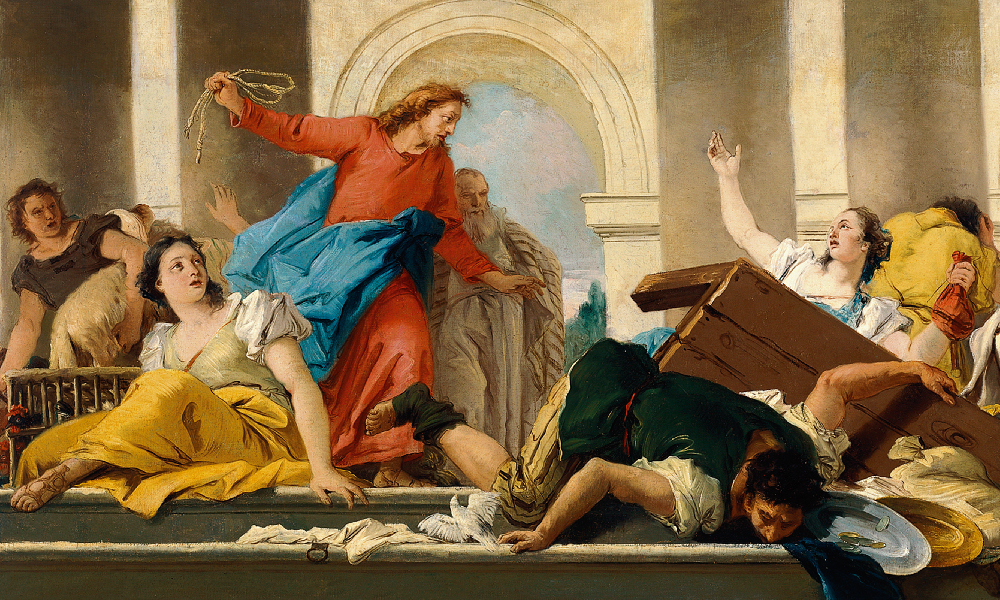 Cuando se acercaba la Pascua de los judíos, Jesús llegó a Jerusalén y, al ver el templo convertido en un mercado, hizo un látigo de cuerdas y echó fuera a los vendedores y cambistas, diciendo con firmeza: “Quiten todo de aquí y no conviertan en un mercado la casa de mi Padre”.