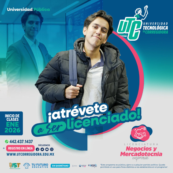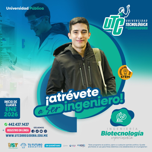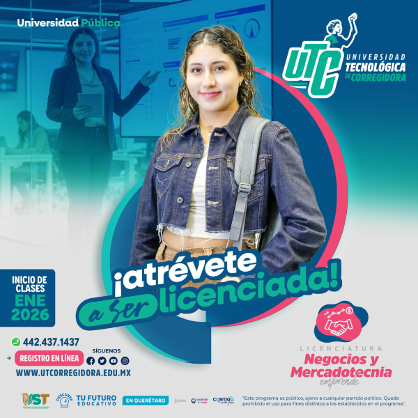 Corregidora, Qro. La Universidad Tecnológica de Corregidora (UTC) se encuentra en la etapa final de inscripciones para el inicio de clases del 7 de enero de 2026, en dos programas académicos estratégicos y de alta empleabilidad: Ingeniería en Biotecnología y Licenciatura en Negocios y Mercadotecnia.
